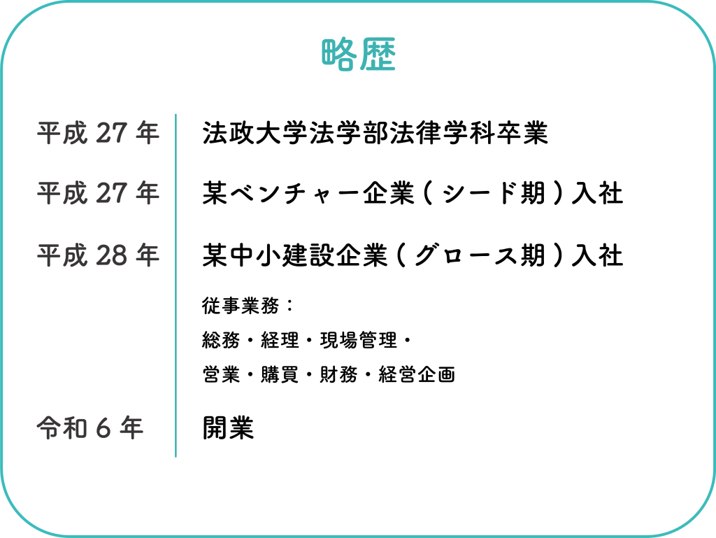 私は大規模修繕工事を主業とする中小建設企業で総務・経理~財務~現場管理~経営企画~購買~営業と多岐にわたる経験を積んでまいりました。キャリア中盤、節目となる10年目に当事業での独立を決意したわけですが、その矢先に思いがけない出来事に直面します。勤務先の事業継続断念、すなわち倒産です。